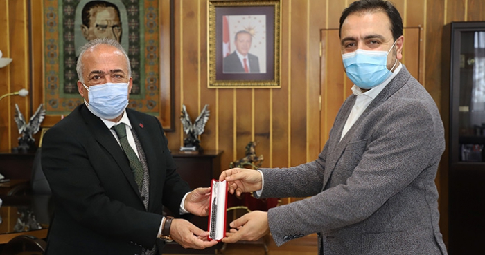 Atatürk Üniversitesi Aşı Üretme ve Antijen Hazırlama Koordinatörlüğünün “Covid-19’a Karşı İki Farklı Ekspresyon Sistemi Kullanılarak Aşı Geliştirilmesi” projesi için Erzurum’a gelen Türkiye Sağlık Enstitüleri (TÜSEB) Başkanı Prof. Dr. Erhan Akdoğan, Rektör Çomaklı ile bir araya gelerek süreçle ilgili görüş alışverişinde bulundu.