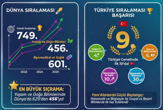 Yaşam ve Doğa Bilimleri alanında ise dünya sıralamasında 620’den 456’ya, Türkiye sıralamasında ise 7’den 4’e yükselerek en dikkat çekici ilerlemelerden birini kaydetti.