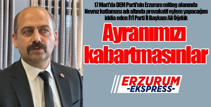 ERZURUMEKSPRES - İYİ Parti Erzurum İl Başkanı Ali Öğdük 17 Mart'da DEM Parti'nin Erzurum miting alanında Nevruz kutlaması adı altında provakatif eylem yapacağını iddia etti.